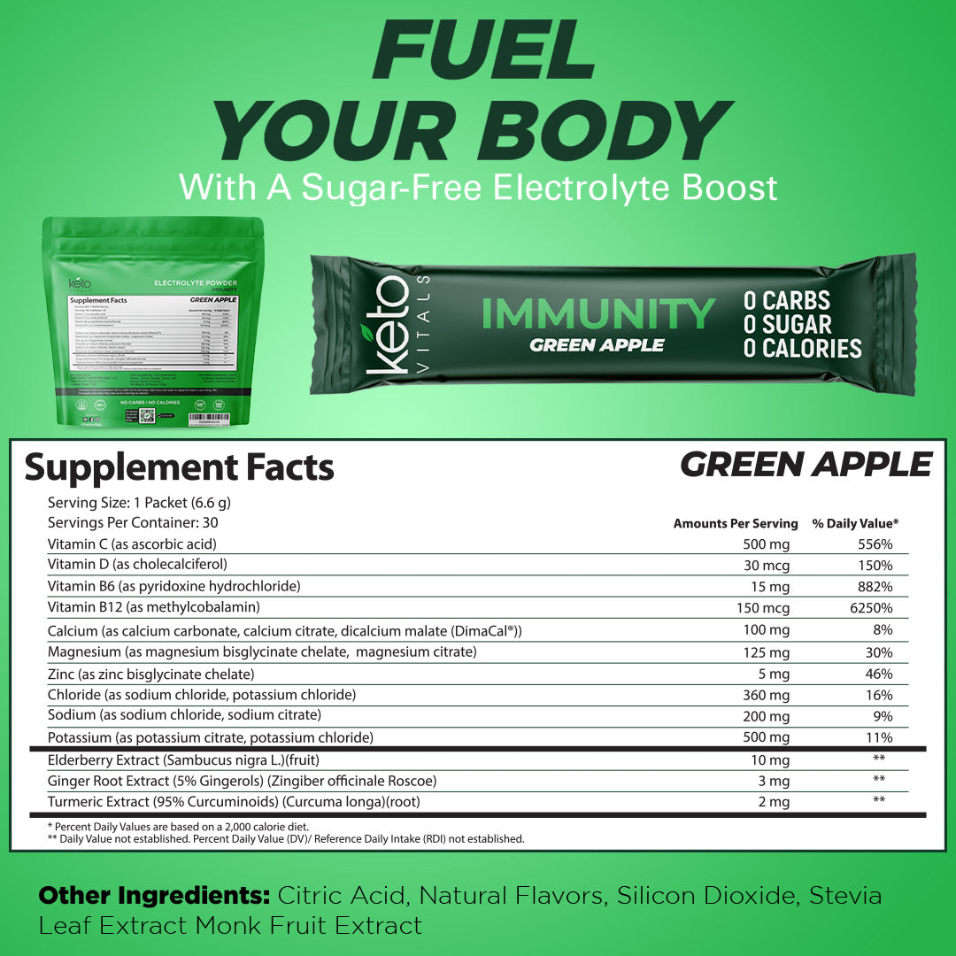 - Delicious and Thirst-Quenching - Your body deserves enhanced electrolytes, vitamins, and minerals to perform at your peak. So, hydrate with KetoVitals’ sugar free electrolyte powder. It comes in a green apple flavor for a refreshing boost.