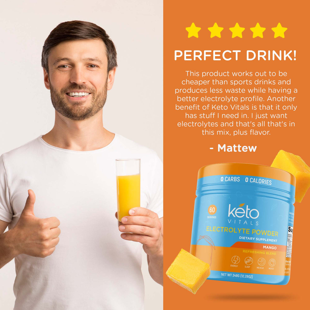 The Mango electrolytes are my second favorite flavor. It is very tropical and refreshing. It tends to be more sweet though and lacks a hint of tartness that natural mango has. That's why I like fruit punch more, it's the perfect balance between sweet and tart. I love that this keto electrolytes uses stevia for sweetener instead of sugar alcohols. It dissolves well in water with the help of a mixing/foaming stick. Shipping was fast. Highly recommend this product.